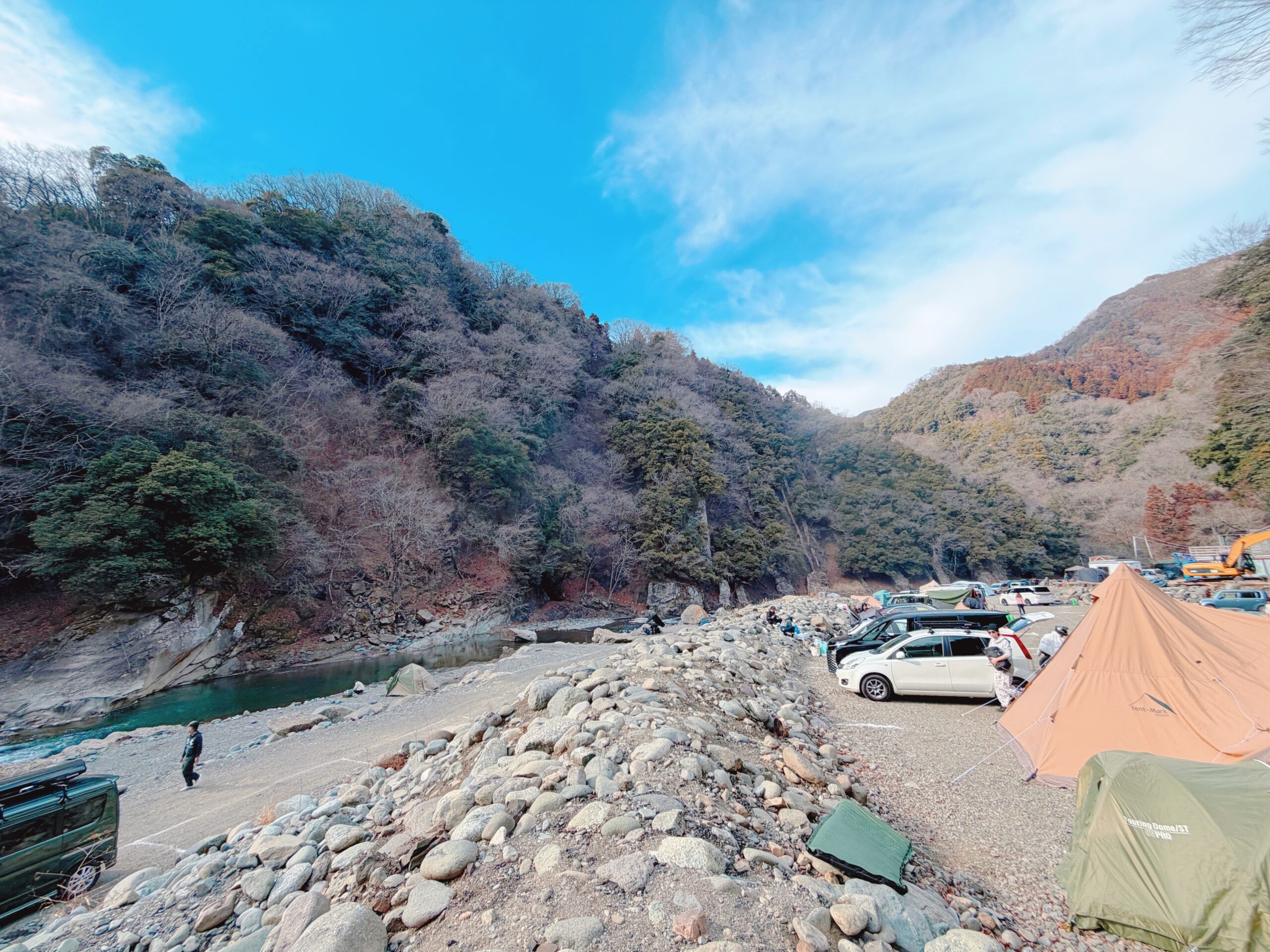 ちなみにこの区画だと堤防?があるのでキャンプ中は基本的に流れる川は見られなかったのでそこだけちょっと残念だったかも。