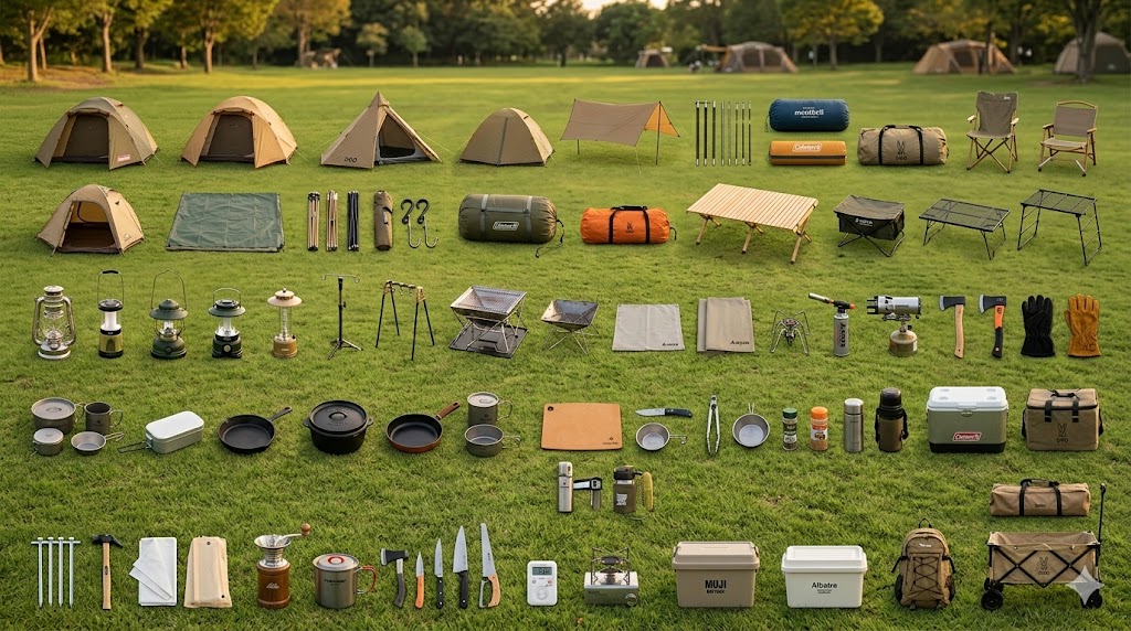 各カテゴリーと、その記事内で紹介したキャンプギアの名称を全て書いておきます。