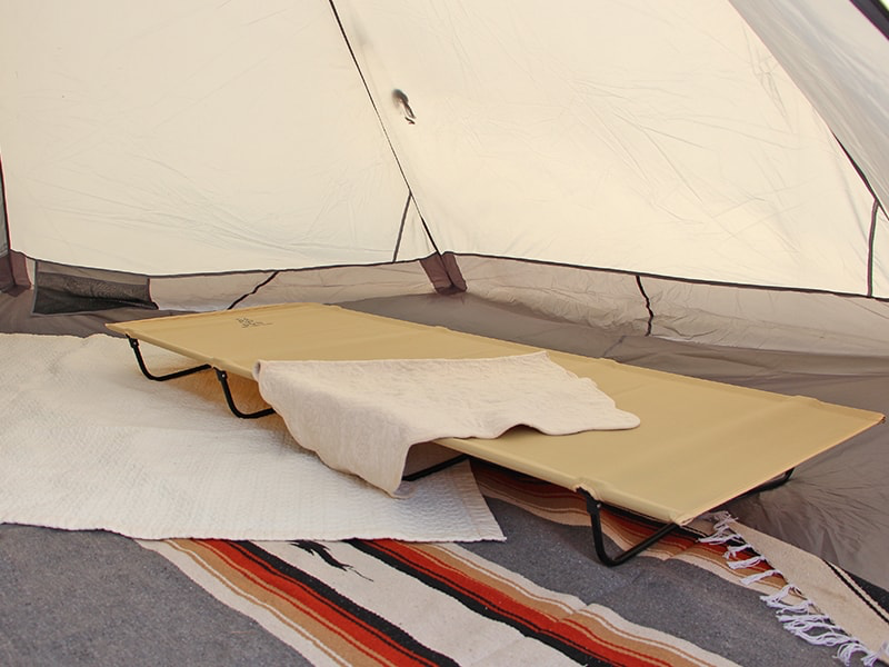 コットは地面から身体を浮かせることができるため、夏は通気性が良く、冬は冷気の影響を受けにくいという大きなメリットがあります。
